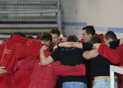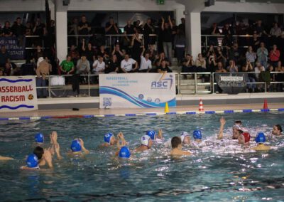 Erst im Schlussviertel erhöhte die Mannschaft wieder Tempo und Druck dominierte das Geschehen klar und machte den Kantersieg auch auf der selbst mitgebrachten Anzeigetafel deutlich sichtbar. Der letzte Abschnitt wurde schließlich deutlich mit 7:1 gewonnen. Positiv hob der Trainer die Kommunikation im Wasser hervor die vor rund 200 lautstarken Zuschauern ein wichtiger Faktor war.